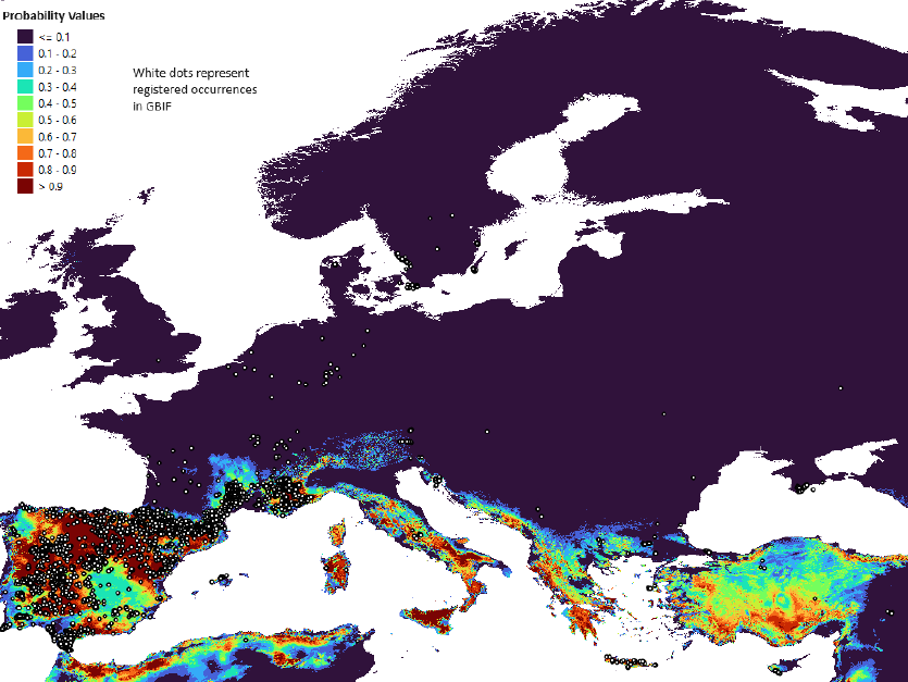 Example of the distribution map and occurrences for Gyps fulvus
