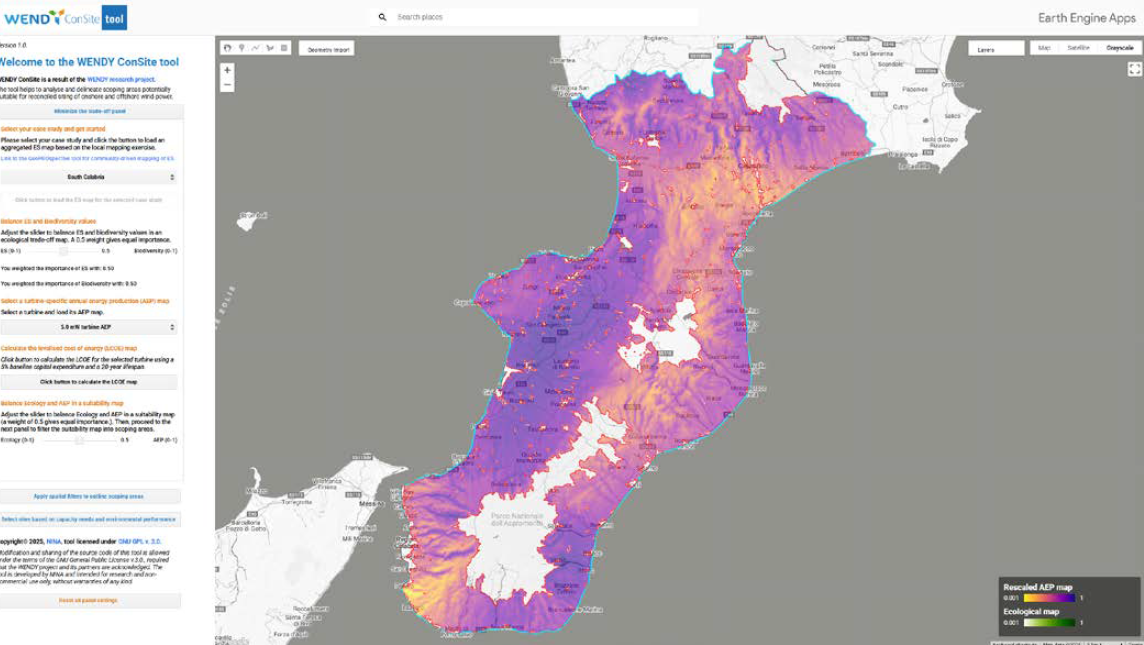 The WENDY toolbox is a powerful spatial decision-support system developed within the WENDY project to optimize the scoping and siting of wind energy projects. It integrates technical, environmental, and social criteria to help planners identify the most suitable locations for wind farm development, balancing energy production potential with ecological preservation, masked for social acceptance and curtailments.